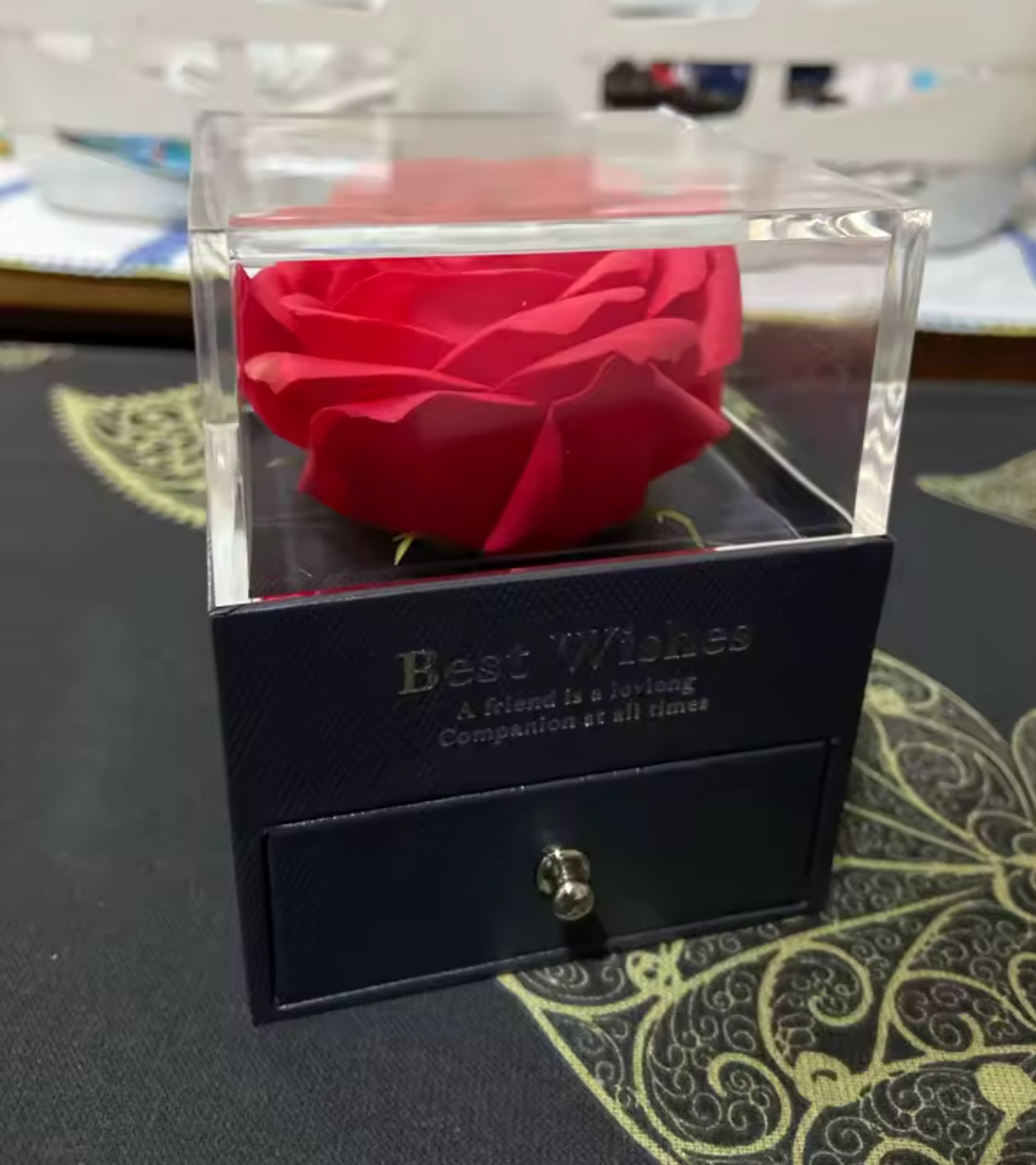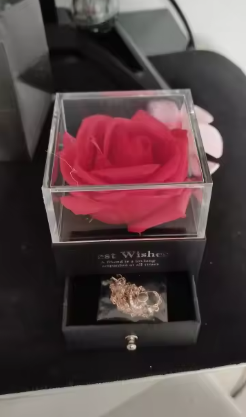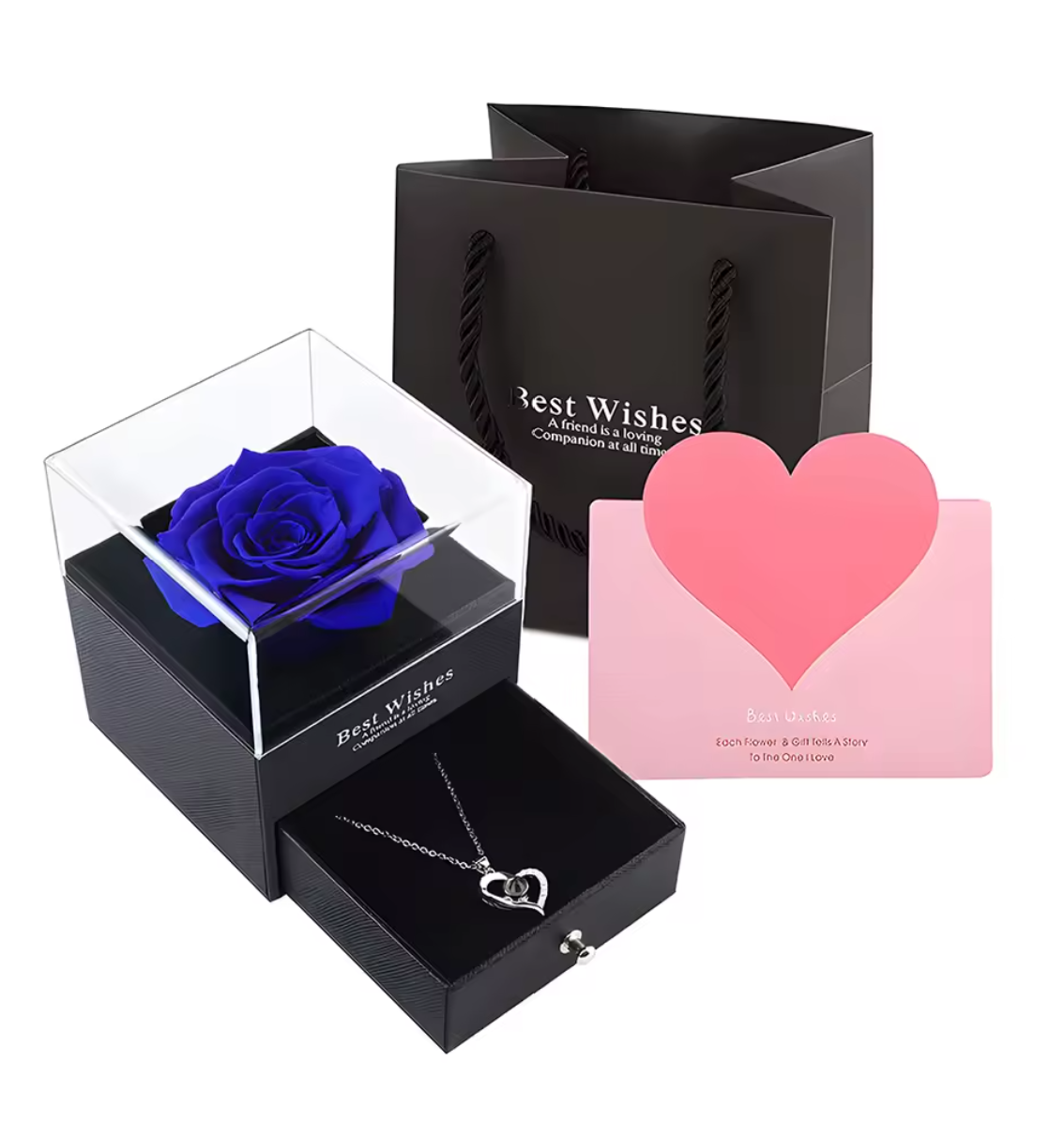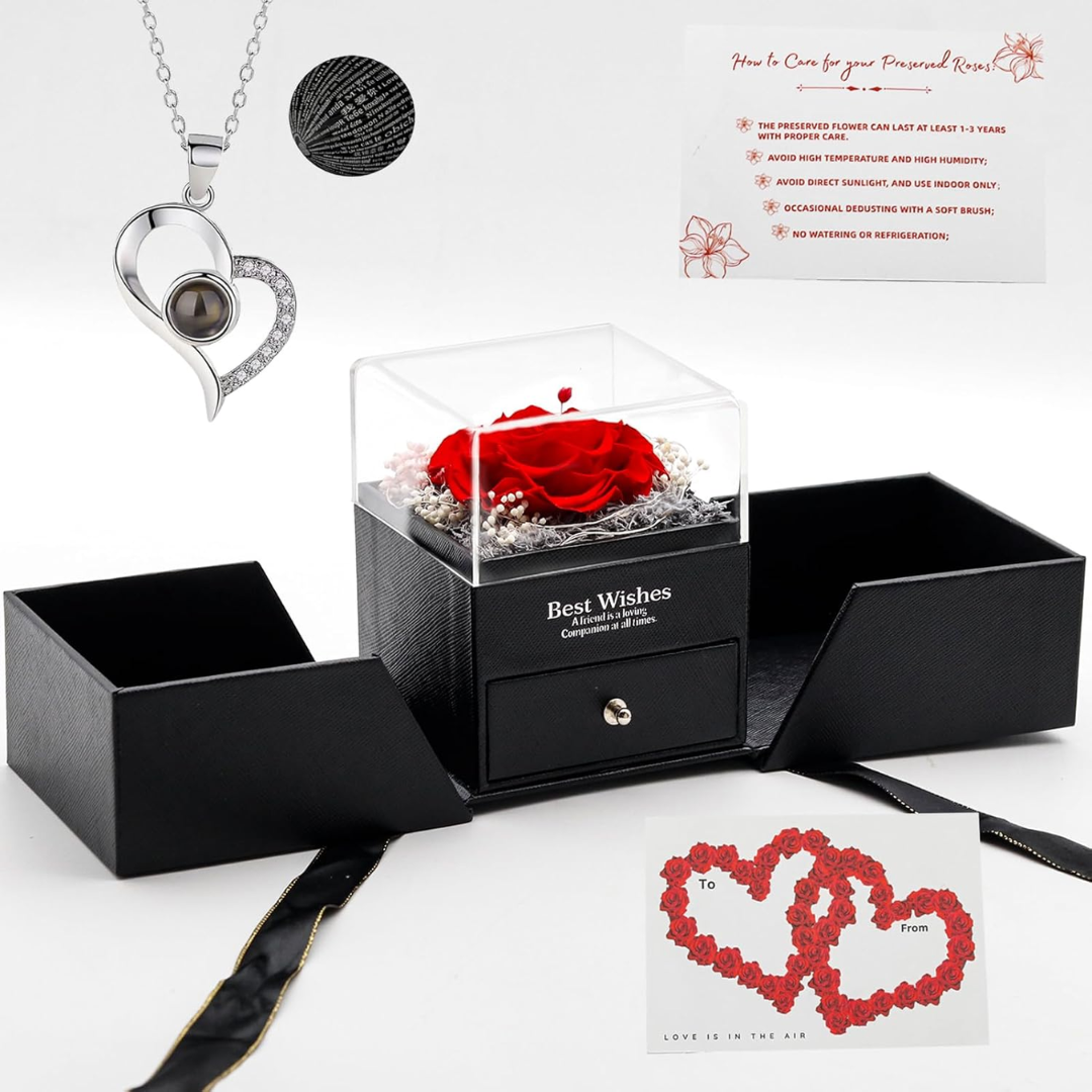 Rosa Luz de Amor – Caja de regalo con rosa eterna y collar “Te Amo”.
